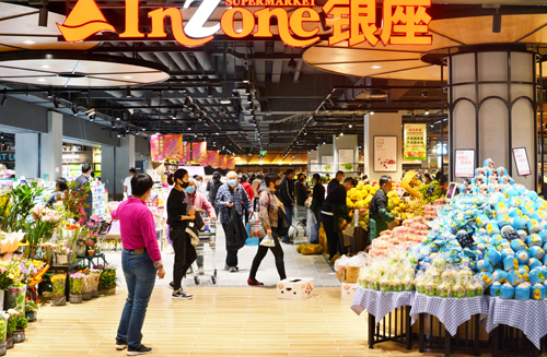 11月8日,济南银座购物广场店历经一个月整修,盛装开业。开业首日,店内客流量与销售额 较之前呈数倍增长。众多品类中,消费者对生鲜类产品、网红产品及熟食最感兴趣。9日下午记者看到,银座购物广场店装修以木质元素为主,“家”的味道十足。各区域被打通开来,商品均呈敞开式、生活场景式陈列模式。店内热闹非凡,顾客们对改造后的新店面十分满意,称赞不已。◎山东商报·速豹新闻网见习记者 张雨