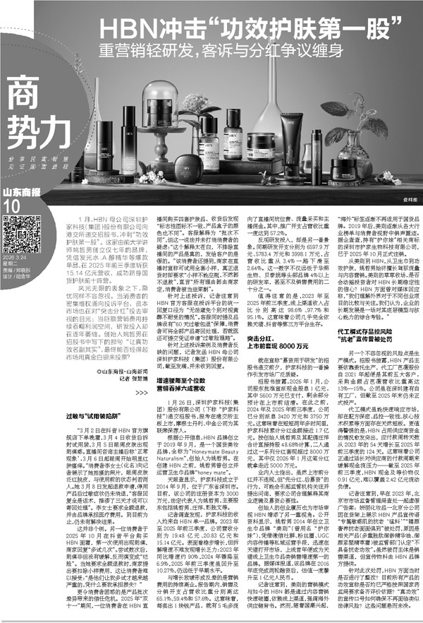 1月,HBN母公司深圳护家科技(集团)股份有限公司向港交所递交招股书,冲刺“功效护肤第一股”。
